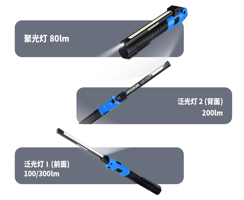 便携是可折叠工作灯,三光源设计,底部&背面带强磁,
